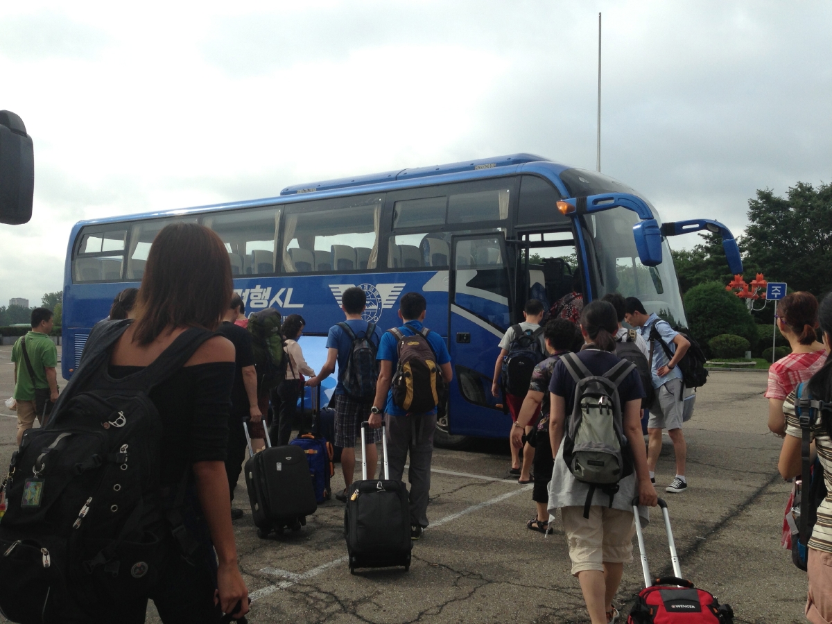 Boarding the bus from the hotel