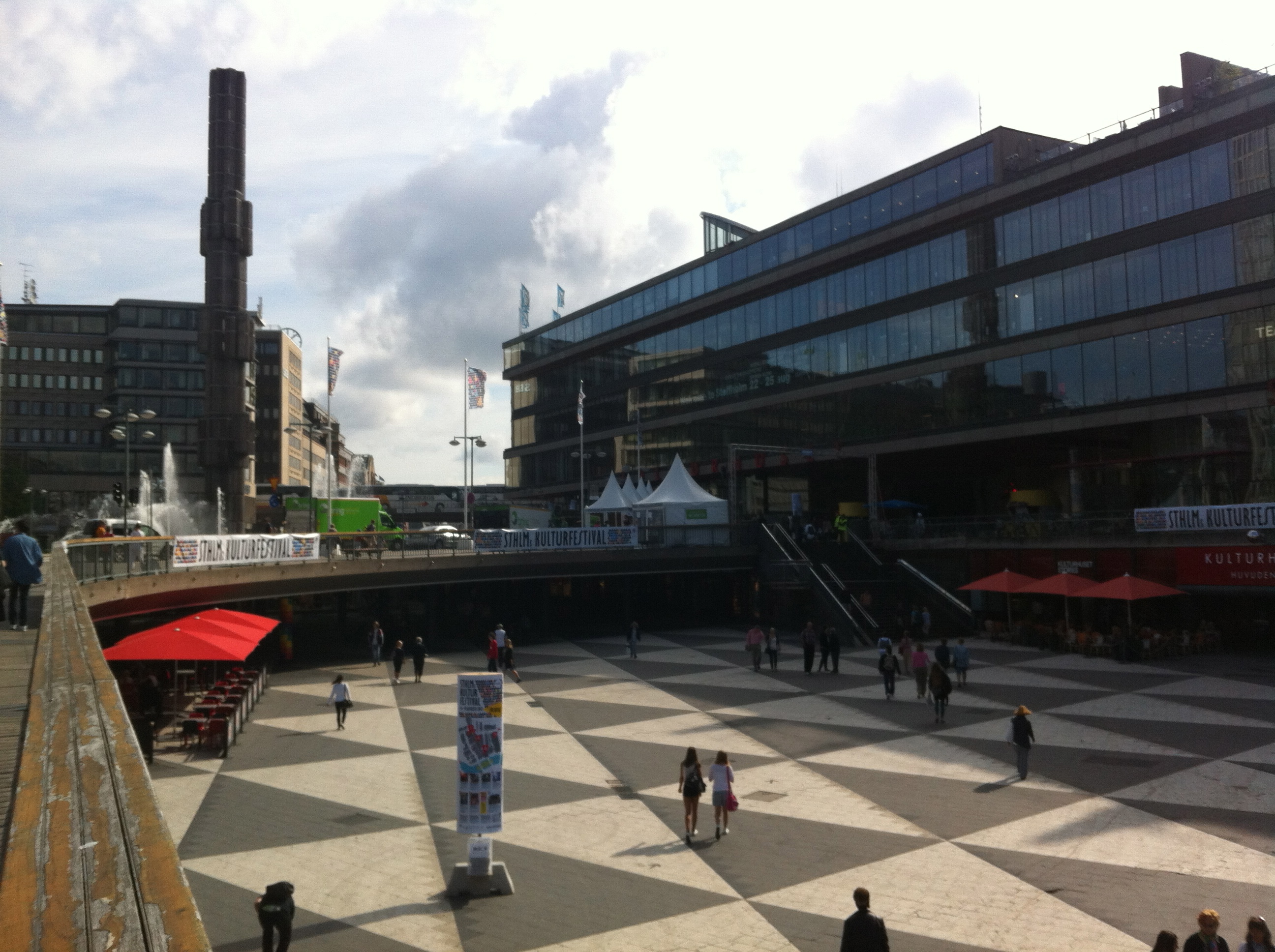 We started at this square, which is fruit and vegetable market during the day. It is flanked by the Stockholm Concert Hall with an interesting sculpture in front of it. From there we went downstairs to the food market and bought lunch from Hav Fisk & Catering.